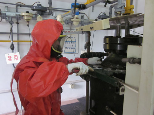 由于此次維護(hù)保養(yǎng)涉及到重大危險(xiǎn)源,相關(guān)部門十分重視,提前制定了有針對(duì)性的保養(yǎng)計(jì)劃,并對(duì)保養(yǎng)中的各個(gè)環(huán)節(jié)進(jìn)行了細(xì)化分工。按照預(yù)定步驟,在經(jīng)過(guò)抽真空裝置吸收蒸發(fā)器管道中殘余氯氣、拆卸連接缸體外部管道和主體氣缸、除銹氣缸及連接管道、疏通缸體內(nèi)部管道、更換部分老化零部件、重新整合缸體等一系列操作程序后,調(diào)試檢測(cè)合格,運(yùn)行正常。