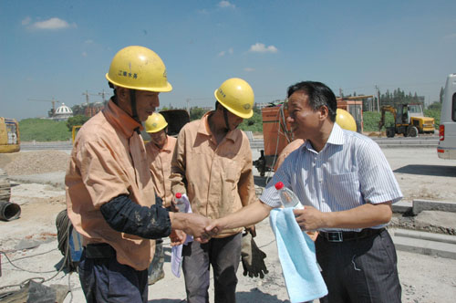 7月27日,市總工會(huì)副主席卞正環(huán)一行,來(lái)到延陵?yáng)|路供水管線建設(shè)工地,走訪慰問(wèn)在高溫下的一線施工人員,向他們發(fā)放了礦泉水、毛巾等消暑用品。卞正環(huán)對(duì)冒著酷暑、堅(jiān)守崗位的水務(wù)人表示了由衷的敬意,同時(shí)要求注意調(diào)整作息時(shí)間,做好個(gè)人防護(hù)和防暑降溫工作,確保人身、施工、供水安全。