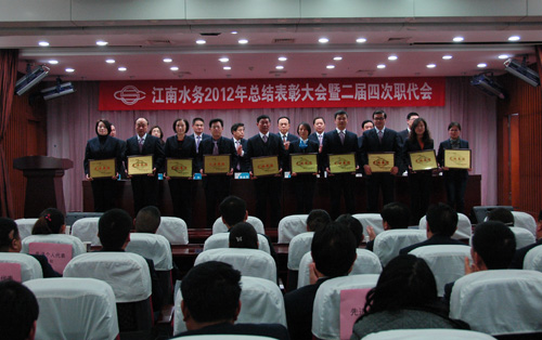 1月21日,公司在14樓會(huì)議室召開2012年度總結(jié)表彰大會(huì)暨二屆四次職代會(huì)。公司黨委書記、董事長(zhǎng)龔國(guó)賢作重要講話,總經(jīng)理沙建新作題為《提振信心 凝聚合力 奮發(fā)實(shí)干開創(chuàng)水務(wù)事業(yè)新局面》的2012年度總結(jié)報(bào)告,并詳細(xì)部署2013年度工作,明確了今年的各項(xiàng)工作目標(biāo)任務(wù)。會(huì)議由副總經(jīng)理高立主持。