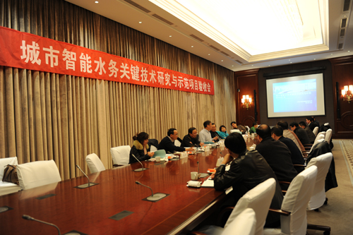 12月23日,公司歷時3年精心組織實施的“城市智能水務(wù)關(guān)鍵技術(shù)研究與示范”項目,在江陰賓館1號會議廳順利通過國家住建部驗收,由國務(wù)院資深參事王秉忱、東南大學教授吳浩汀、北京市政設(shè)計院總工方先金等7名專家組成的項目評審委員會在對項目給予充分肯定的同時,給出了較高的評價。會議由江蘇省住建廳科技處王華處長主持,江陰市公用局、科技局、信息辦等行業(yè)主管部門和公司領(lǐng)導(dǎo)龔國賢、沙建新、曾武及項目組成員參加驗收會。