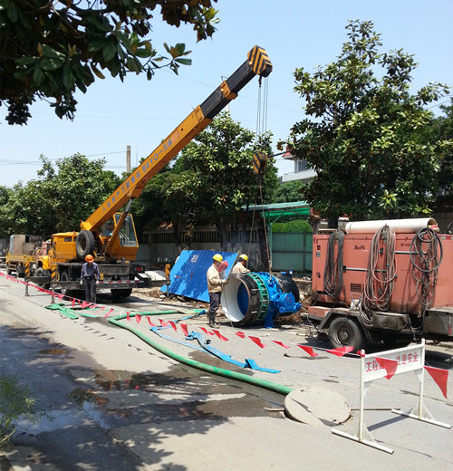 此次施工涉及范圍廣,為最大限度降低施工對(duì)供水和道路交通的影響,市政工程公司精心組織,嚴(yán)密部署,提前安排人員在公園路做好閥門(mén)開(kāi)挖安全圍擋工作,然后按照既定方案,于當(dāng)天上午7點(diǎn)準(zhǔn)時(shí)關(guān)閉總閥,在已挖開(kāi)的總管上開(kāi)放水口。但因公園路總管地勢(shì)低、管線長(zhǎng),施工時(shí)內(nèi)部自然壓力較大,導(dǎo)致預(yù)先設(shè)定的泄壓孔無(wú)法完全割開(kāi)。市政公司主要負(fù)責(zé)人了解情況后,親赴現(xiàn)場(chǎng)坐鎮(zhèn)指揮,結(jié)合實(shí)際情況調(diào)整施工方案,迅速增派施工人員在暨陽(yáng)山莊西側(cè)DN1500支管上開(kāi)口,以減小總管壓力。經(jīng)過(guò)緊張而有序地施工,下午4點(diǎn)30分順利完工,比預(yù)期時(shí)間提早了一個(gè)半小時(shí)。