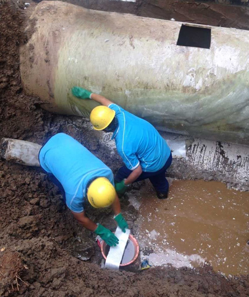 按照“盡快修復(fù),影響范圍最小”的要求,搶修人員先用挖掘機(jī)開(kāi)挖至漏水點(diǎn)附近,再采取人工開(kāi)挖的辦法搶修漏水部位。為提速施工進(jìn)度,爭(zhēng)取最短時(shí)間恢復(fù)通水,現(xiàn)場(chǎng)人員不顧疲勞,站進(jìn)齊膝深的泥漿中,爭(zhēng)分奪秒,輪流作業(yè),硬是用鐵鍬在管道下方掏出一個(gè)修補(bǔ)管道破裂處的作業(yè)空間。清洗、切割、打磨、敷玻璃纖維布……搶修工作有條不紊地進(jìn)行。經(jīng)過(guò)近23個(gè)小時(shí)的持續(xù)奮戰(zhàn),終于在次日凌晨2點(diǎn)30分恢復(fù)正常供水,比預(yù)計(jì)時(shí)間整整提前了3個(gè)小時(shí)。