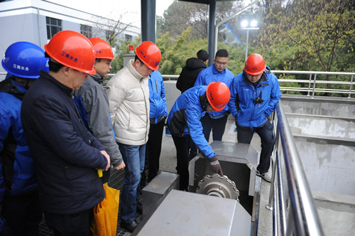 “調試開始!”12月15日,隨著小灣水廠調試總指揮一聲令下,DN1600進水閥門開啟,長江水由配水井源源不斷的進入到絮凝反應池中,小灣水廠深度處理聯(lián)動調試正式開始。