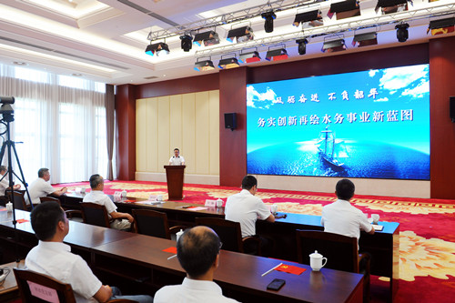 公司董事長、總經(jīng)理華鋒作題為《砥礪奮進(jìn) 不負(fù)韶華——務(wù)實創(chuàng)新再繪水務(wù)事業(yè)新藍(lán)圖》的半年度工作報告。他指出,2020年是高水平全面建成小康社會之年,是“十三五”規(guī)劃收官之年,也是我市“六攻堅六突破”三年行動起步之年。上半年,面對國內(nèi)外疫情的沖擊影響,公司在市委市政府的正確領(lǐng)導(dǎo)下,緊緊圍繞董事會確定的年度目標(biāo)任務(wù),聚團結(jié)之力,行務(wù)實之舉,一手抓防控,一手抓發(fā)展,各項工作保持了平穩(wěn)的發(fā)展勢頭。一、一以貫之,聚力優(yōu)質(zhì)供水高質(zhì)量。牢守主陣地,提升供水管理水平;掌握主動性,提升質(zhì)量管理標(biāo)準(zhǔn);瞄準(zhǔn)主方向,提升供水服務(wù)效率。二、鍥而不舍,統(tǒng)籌重點工作高質(zhì)量。試點鰣魚港路污水管道非開挖修復(fù)施工工程;建立培訓(xùn)和后備人才培養(yǎng)體系;制定《標(biāo)后管理制度》;完成肖山、澄西水廠深度處理工程65%的工程量;編制完成老舊管網(wǎng)改造決策辦法初稿;制定二次供水設(shè)備全生命周期管理辦法;建立水量變化、漏損監(jiān)測體系;獲得專利3項、軟件著作權(quán)1項等。三、咬定目標(biāo),深耕排水管理高質(zhì)量。按照規(guī)范要求,運行維護(hù)南閘街道、徐霞客鎮(zhèn)、敔山灣等區(qū)域共計637公里排水管網(wǎng)、124座污水泵站,完成清疏管網(wǎng)352.9公里,清掏15829座污水檢查井、雨水箅。四、持之以恒,壓實安全管理高質(zhì)量?椕芘挪榫W(wǎng),疫情防控常態(tài)化;織密安全網(wǎng),應(yīng)急管理全覆蓋。五、一絲不茍,彰顯內(nèi)控管理高質(zhì)量。完善和優(yōu)化內(nèi)控手冊,進(jìn)一步規(guī)范內(nèi)控體系;完善合同管理,控制合同風(fēng)險。六、馳而不息,融入文化建設(shè)高質(zhì)量。堅持初心不改,舉旗幟;堅持以人為本,聚民心。