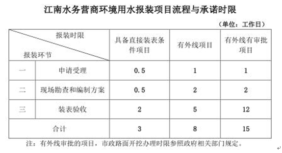 適用于江陰市范圍內(nèi),用水報裝申請口徑為25-100MM的企業(yè)用戶(非居民)