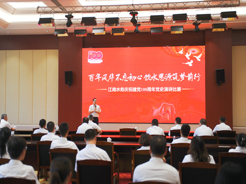 由公司各黨支部推選的13名參賽選手,以深情回顧百年黨史為主題,分別從中共黨史、新中國史、改革開放史、社會(huì)主義發(fā)展史等方面,結(jié)合企業(yè)和自身實(shí)際,聲情并茂展示風(fēng)采。比賽現(xiàn)場,選手們從“黨史”到“當(dāng)下”、從“故事”到“感悟”,把黨史學(xué)習(xí)教育與水務(wù)人的民生為重、忠誠擔(dān)當(dāng)相結(jié)合,充分體現(xiàn)了江南水務(wù)人的愛黨愛國熱情和對(duì)水務(wù)事業(yè)的殷殷熱忱。