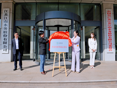 江陰市人力資源和社會保障局黨委委員、副局長居琳,江陰市總工會副主席張艷,江陰市公用事業(yè)服務(wù)中心副主任張琦受邀參加儀式。儀式由公司副總經(jīng)理高立主持,公司黨委副書記、總經(jīng)理池永致辭,居琳和張艷共同為江南水務(wù)職業(yè)技能等級認(rèn)定站揭牌。